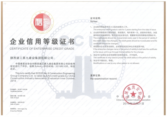 2019年度全國建筑業AAA級信用企...